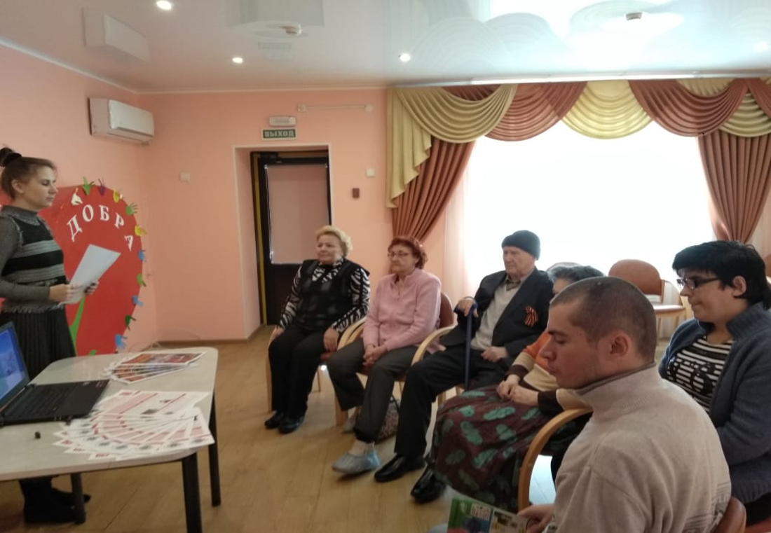 Получатели социальных услуг, являясь группой риска, связанной с возрастом и ослабленным иммунитетом, узнали о гриппе и ОРВИ, его разновидностях, способах заражениях, первых признаках заболевания и средствах лечения, мерах по профилактике.