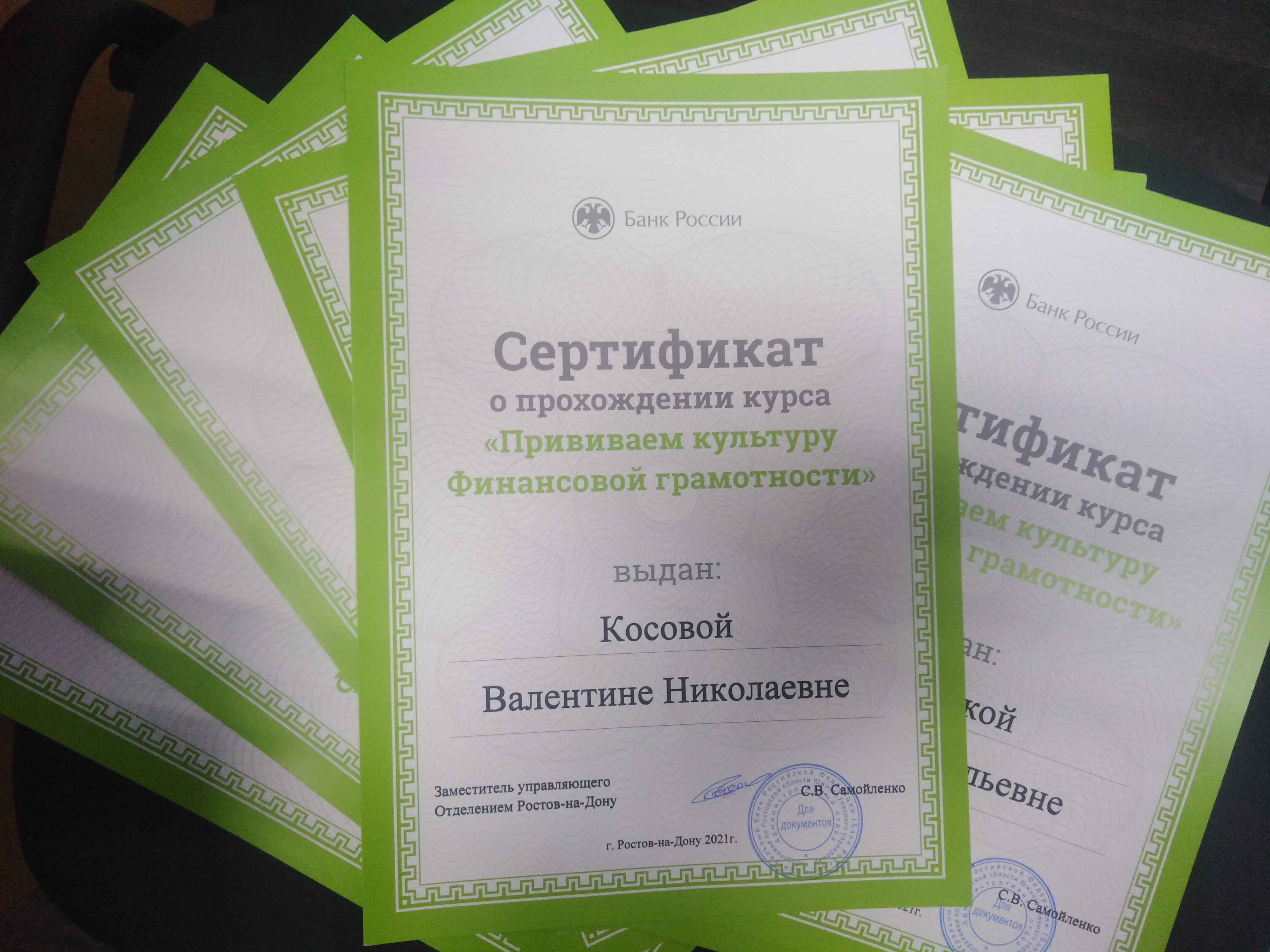 Итогом занятий стало вручение слушателям сертификатов от Центрального Банка РФ.