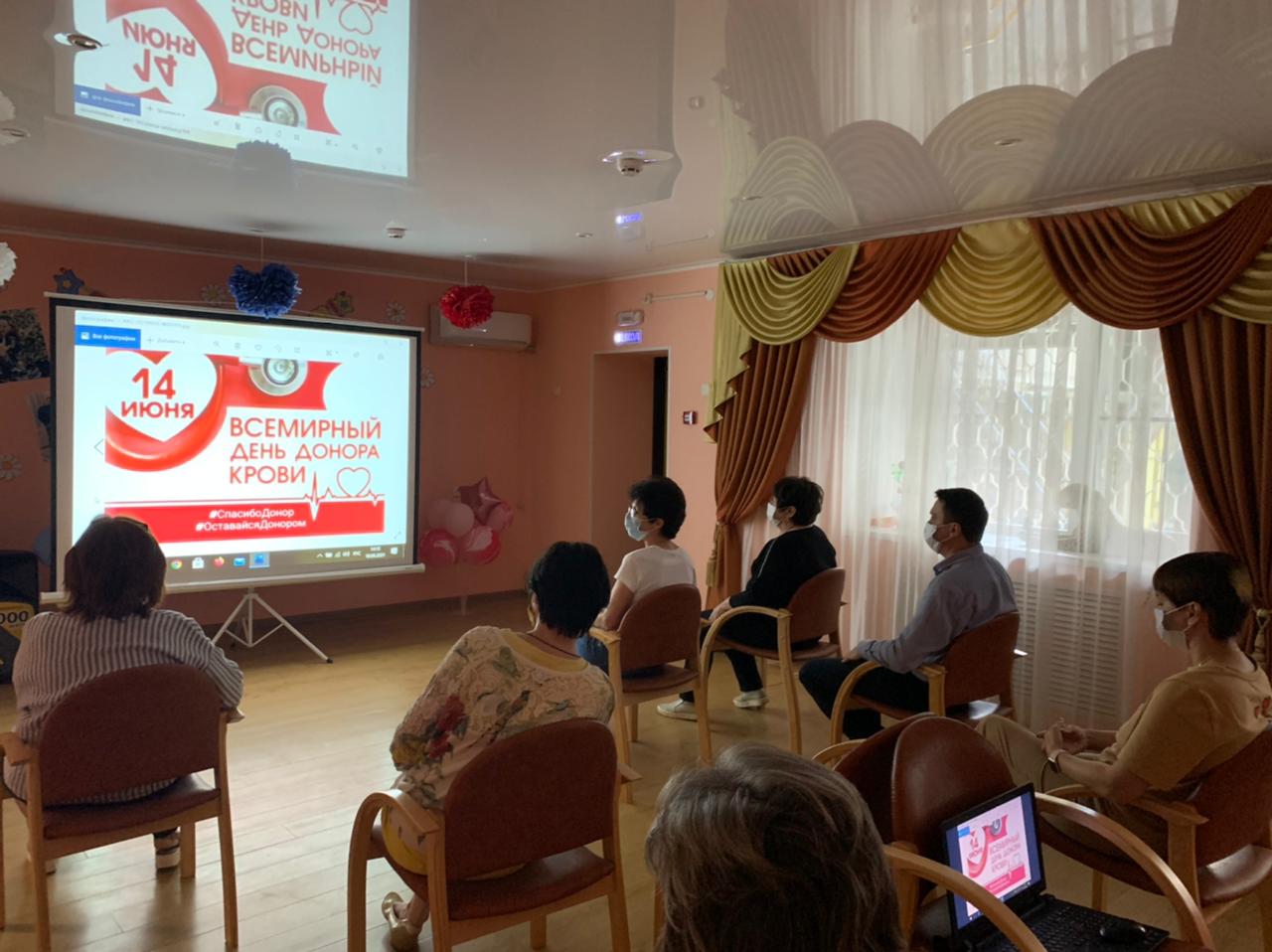 15 июня 2021 года в МБУ «ЦСОН Кировского района г. Ростова-на-Дону» проведено мероприятие в виде - лекционной просветительской беседы, с использованием видео материалов на которой рассказывалось о важности и пользе донорства, о том, кто может сдавать кровь.