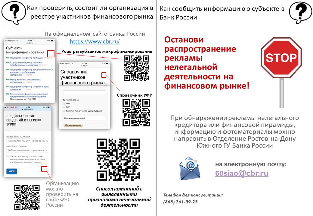 Памятка для населения о рисках получения незаконных финансовых услуг и административной ответственности за распространение рекламы таких услуг