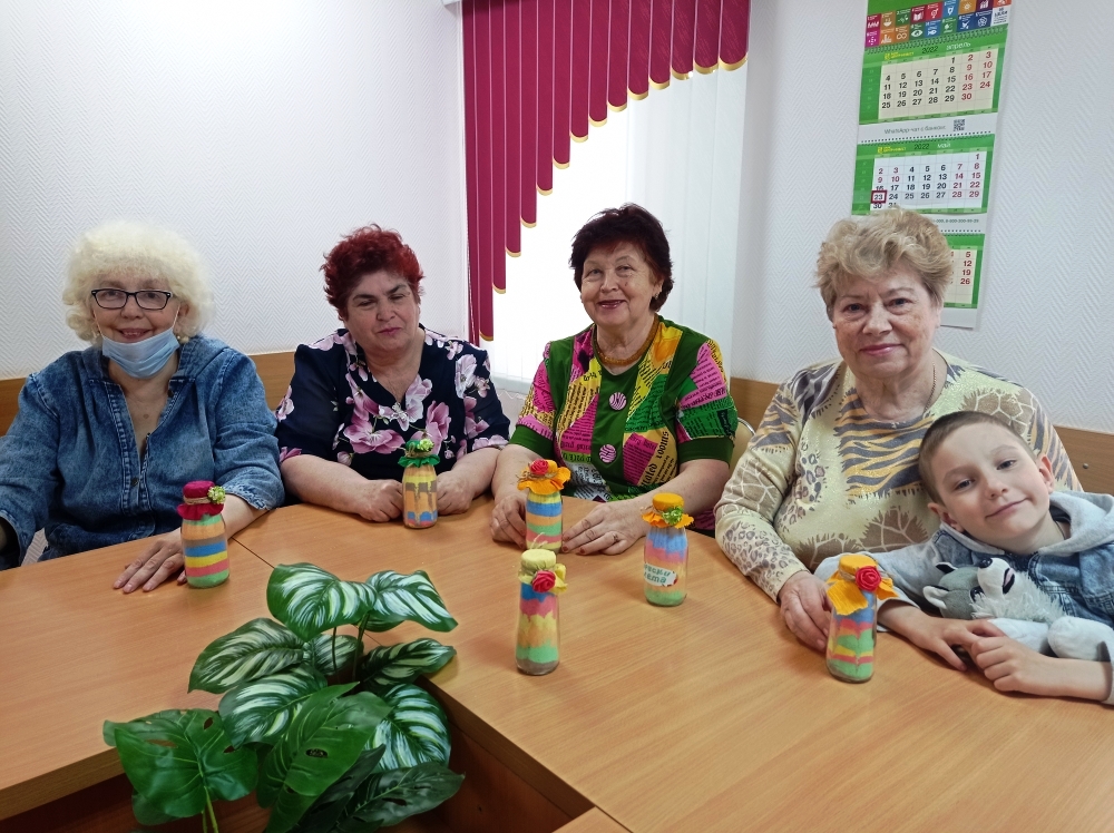 В ожидании этих дней в МБУ «ЦСОН Кировского района г. Ростова-на-Дону» серебряный волонтёр Валентина Михайловна Цацулина в творческих мастерских Центра «Радуга увлечений» провела для получателей социальных услуг мастер-класс по заполнению бутылочки окрашенной мелками солью - «Краски наступающего лета».
