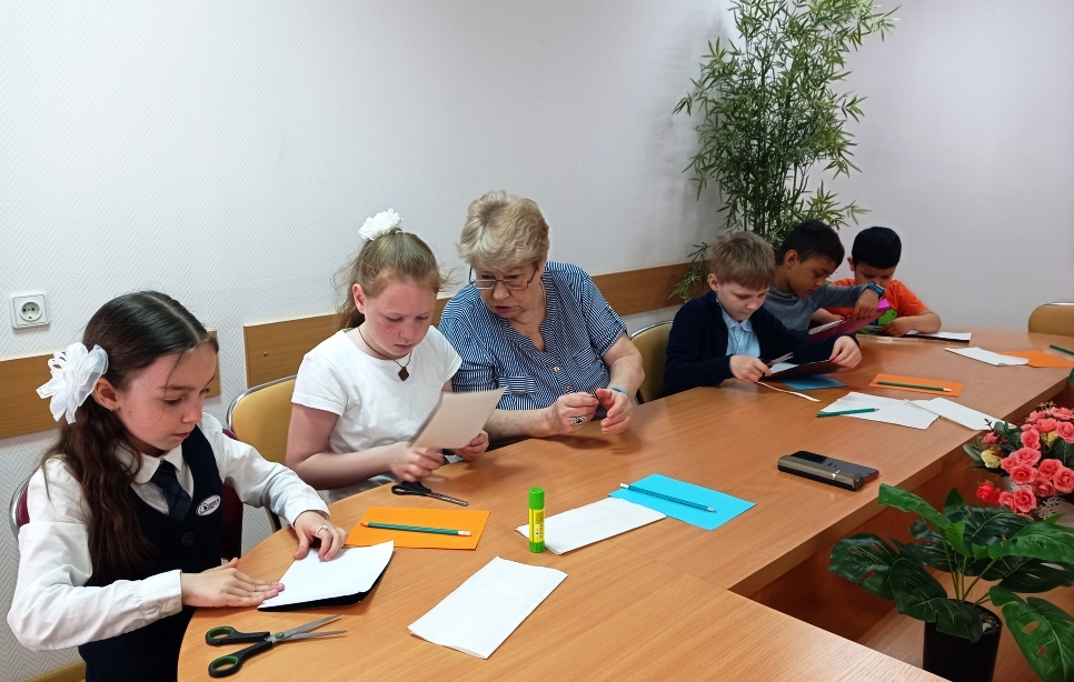 В МБУ «ЦСОН Кировского района г. Ростова-на-Дону» в творческих мастерских «Радуга увлечений» серебряный волонтёр Центра Цацулина Валентина Михайловна провела с детьми мастер-класс «Солнце – это мы!».