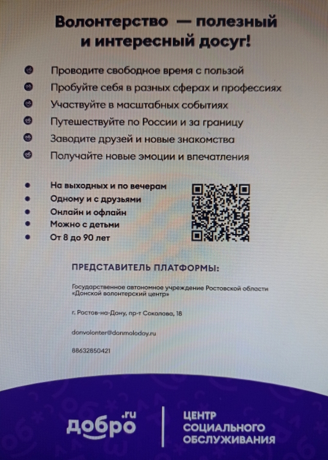 На платформе ДОБРО.РФ волонтеры могут найти себе подходящий проект для участия, а организации – найти волонтеров для реализации проекта. На базе платформы волонтеры также могут пройти обучение, развивать коммуникативные и профессиональные навыки, которые помогут им в дальнейшей профессиональной деятельности.