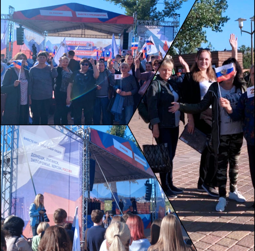 30 сентября 2022 года в ростовском парке «Левобережный» сотрудники МБУ «ЦСОН Кировского района г. Ростова-на-Дону» приняли участие в митинг-концерте #МЫВМЕСТЕ, на котором проходила акция в поддержку Донецкой и Луганской народных республик, Херсонской и Запорожской областей.
