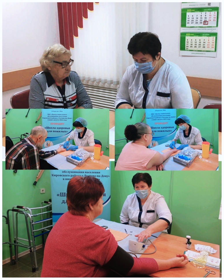 05.10.2022 на базе МБУ «ЦСОН Кировского района г. Ростова-на-Дону» в рамках «Школы здоровья для пожилых» и Декады пожилого человека медицинскими работниками Областного Центра Здоровья, МБУЗ «Городская поликлиника № 10» проведено бесплатное комплексное скрининг – обследование получателей социальных услуг Центра.