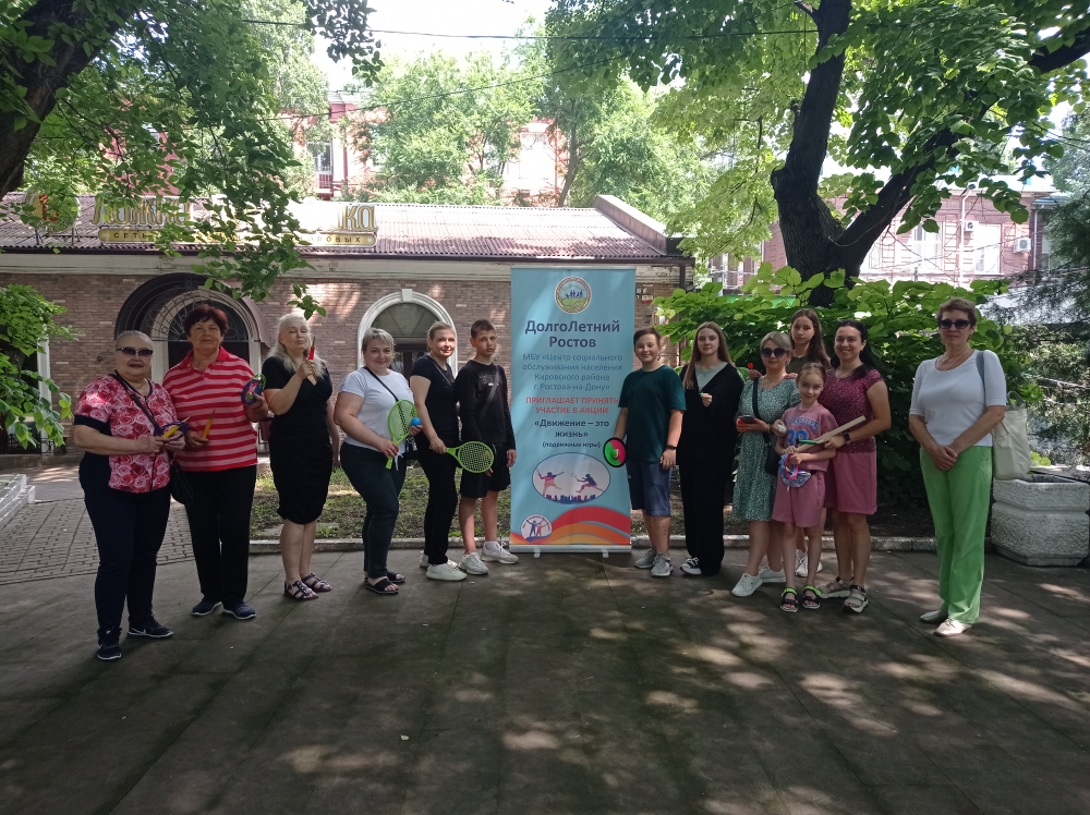 Чтобы тело и душа были молоды, никогда не переставайте играть! Под таким девизом прошло сегодня в городском Парке культуры и отдыха им. 1 Мая выездное мероприятие «Движение – это жизнь», организованное сотрудниками МБУ «ЦСОН Кировского района г. Ростова-на-Дону» для своих получателей социальных услуг и отдыхающих парка в рамках программы «ДолгоЛЕТНИЙ Ростов».