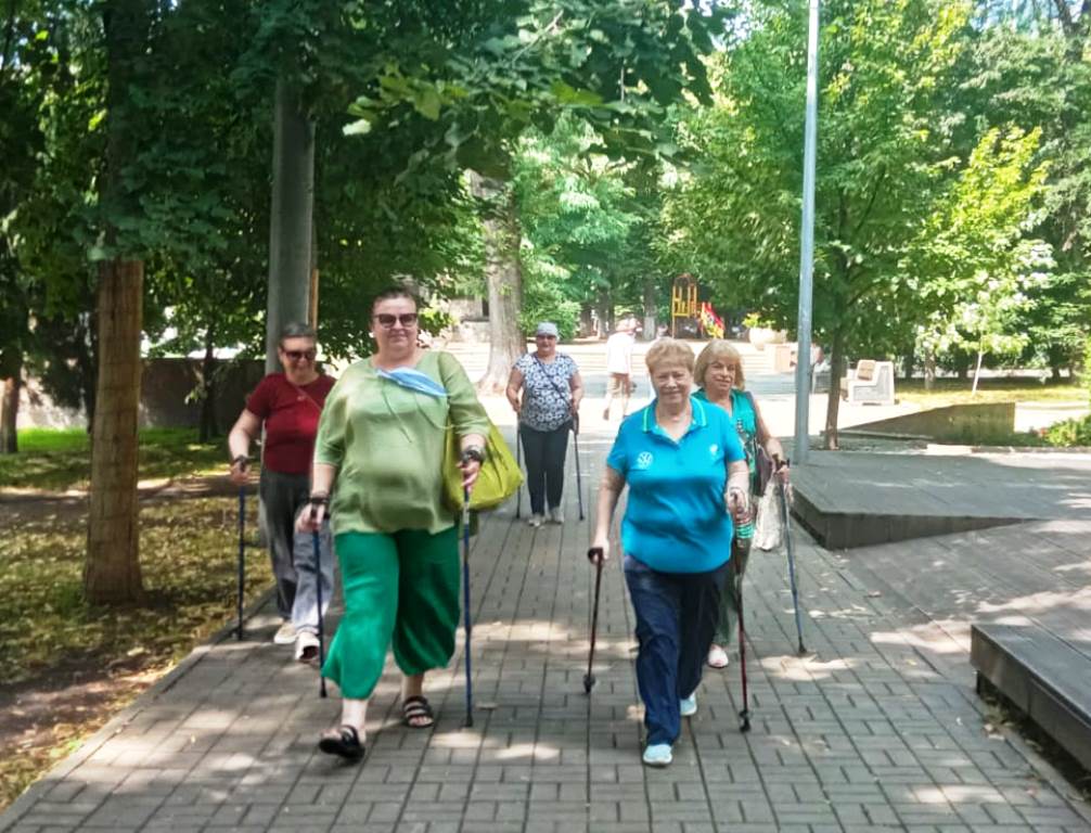 В городском Парке культуры и отдыха им. 1 мая специалисты и серебряные волонтёры МБУ «ЦСОН Кировского района г. Ростова-на-Дону» в рамках проекта, каждый вторник с 10.00 до 11.00 проводят занятия по скандинавской ходьбе «Волшебные шаги здоровья».