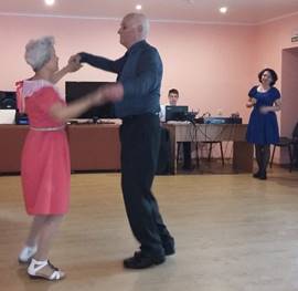Открыла концертную программу ведущая Елена Павловна Сураева - специалист по социальной работе Центра, с песней «Тучи в голубом», в сопровождении танцевальной пары – Александра Семеновича Митько 1938 г.р. и Виолетты Григорьевны Краюхиной 1936 г.р.