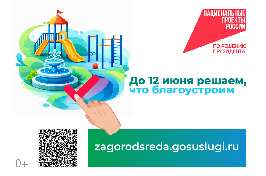 В период с 21 апреля по 12 июня 2026 года проводится Всероссийское онлайн-голосование по отбору территорий (дизайн-проектов), подлежащих благоустройству в 2027 году, на федеральной платформе zagorodsreda.gosuslugi.ru.
