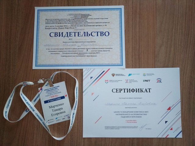 Тамара Егоровна Марченко - директор МБУ «ЦСОН Кировского района г. Ростова-на-Дону» приняла участие в данном образовательном мероприятии и получила сертификат и свидетельство о прохождении обучения в рамках реализации модели отработки основных принципов непрерывного медицинского образования. Новые знания обязательно будут переданы специалистам нашего Центра и внедрены в работу со старшим поколением.