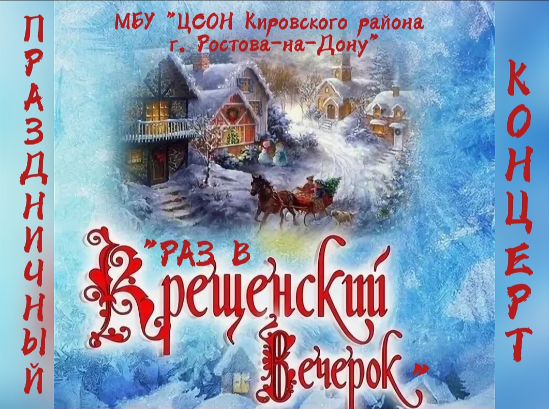 «Раз в Крещенский вечерок» — под таким названием прошёл праздничный концерт в МБУ «ЦСОН Кировского района города Ростова-на-Дону» 17 января, проведенный совместно с Детской школой искусств им. А.П. Артамонова, посвященный всем прошедшим праздникам первой половины января.