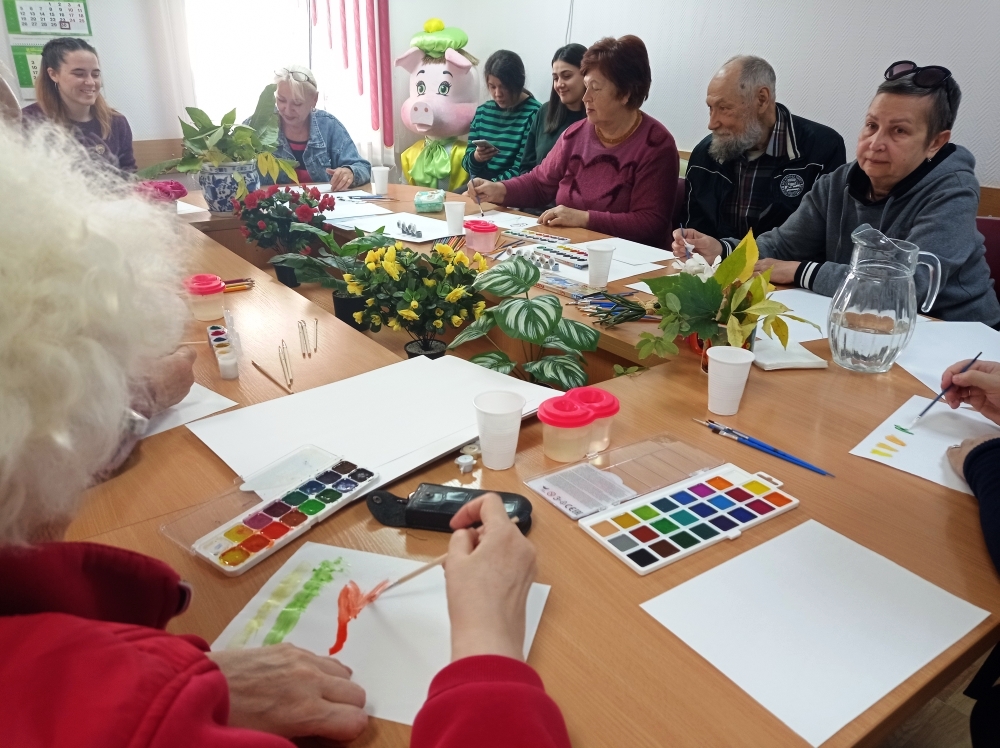 Во время занятия пенсионеры не только сами рисовали, но и активно обсуждали творчество друг друга, общаясь на другие интересные темы. Свободная атмосфера помогла каждому из участников занятий снять психологические «зажимы» и раскрепоститься.
