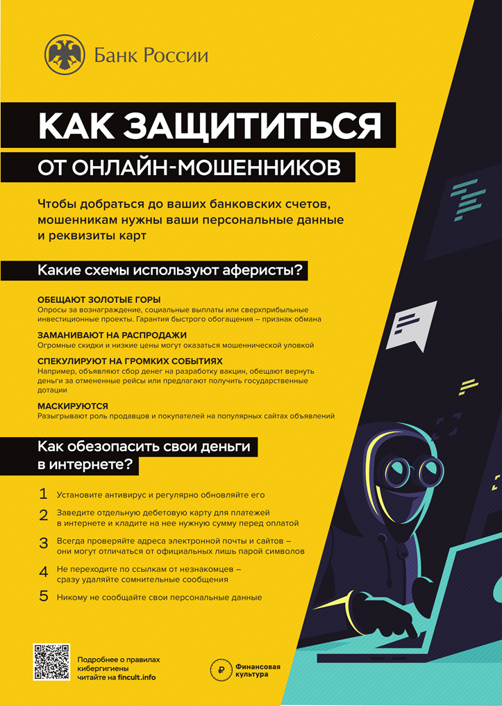 В информационных материалах даны рекомендации как защитить свои персональные данные, как защититься от телефонных и онлайн-мошенников, что делать, если с карты украли деньги.
