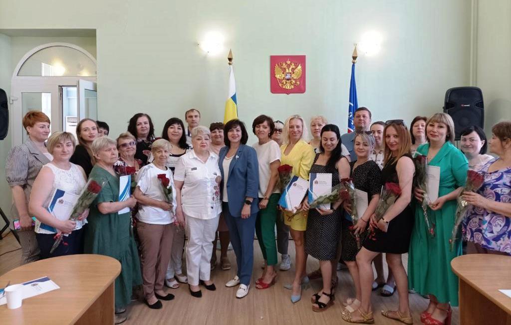 За значительный вклад в развитие системы социального обеспечения населения Кировского района города Ростова-на-Дону, активную жизненную позицию, добросовестный труд грамоты и благодарственные письма от администрации Кировского района города Ростова-на-Дону социальным работникам вручила Глава администрации Кировского района г. Ростова-на-Дону Наталия Олеговна Симаченко.