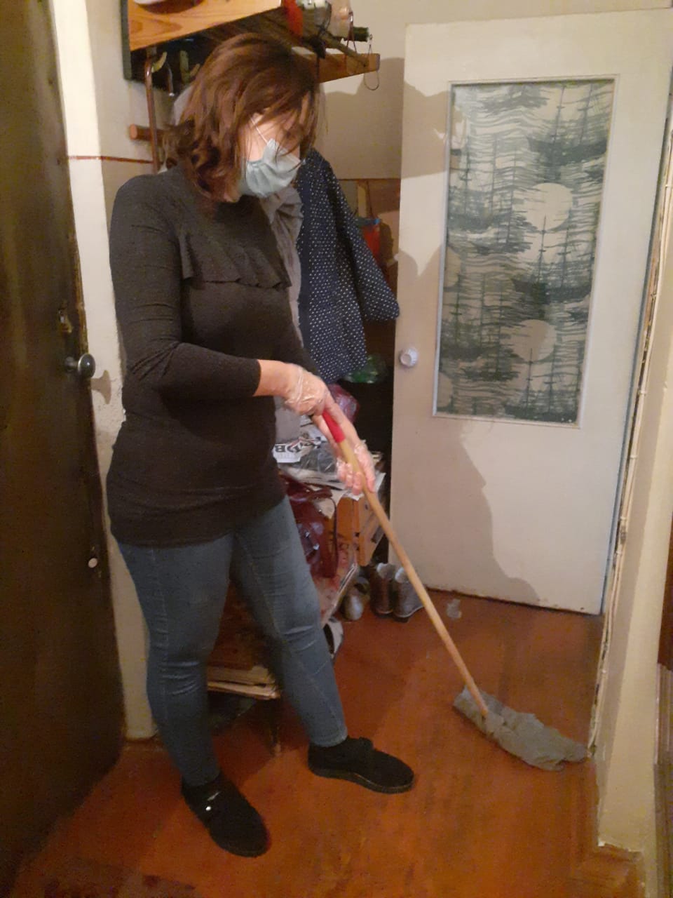 Социальный работник Иванова Галина Александровна помогает получателю социальных услуг Перекрестовой Натальи Анатольевне подготовиться к празднованию Международного женского дня - 8 марта, сделать приборку в квартире.