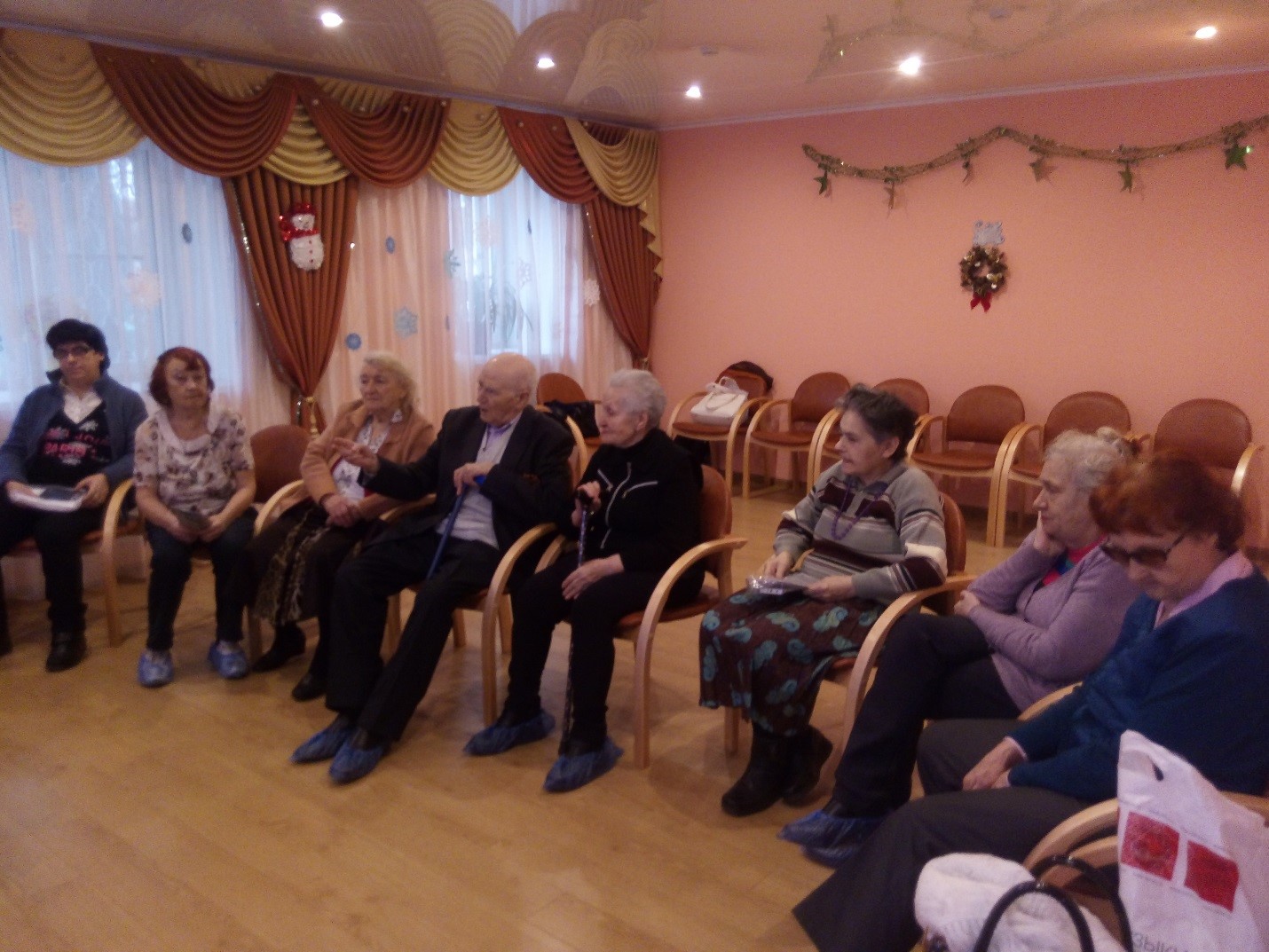 В начале мероприятия Отец Сергий поздравил собравшихся получателей услуг с праздниками, рассказал историю их происхождения. В процессе встречи получатели услуг активно вступали в беседу, каждому было что рассказать и спросить. Особенно было интересно серебряным слушателям поделиться тем, как те или иные праздники отмечаются в их домах.