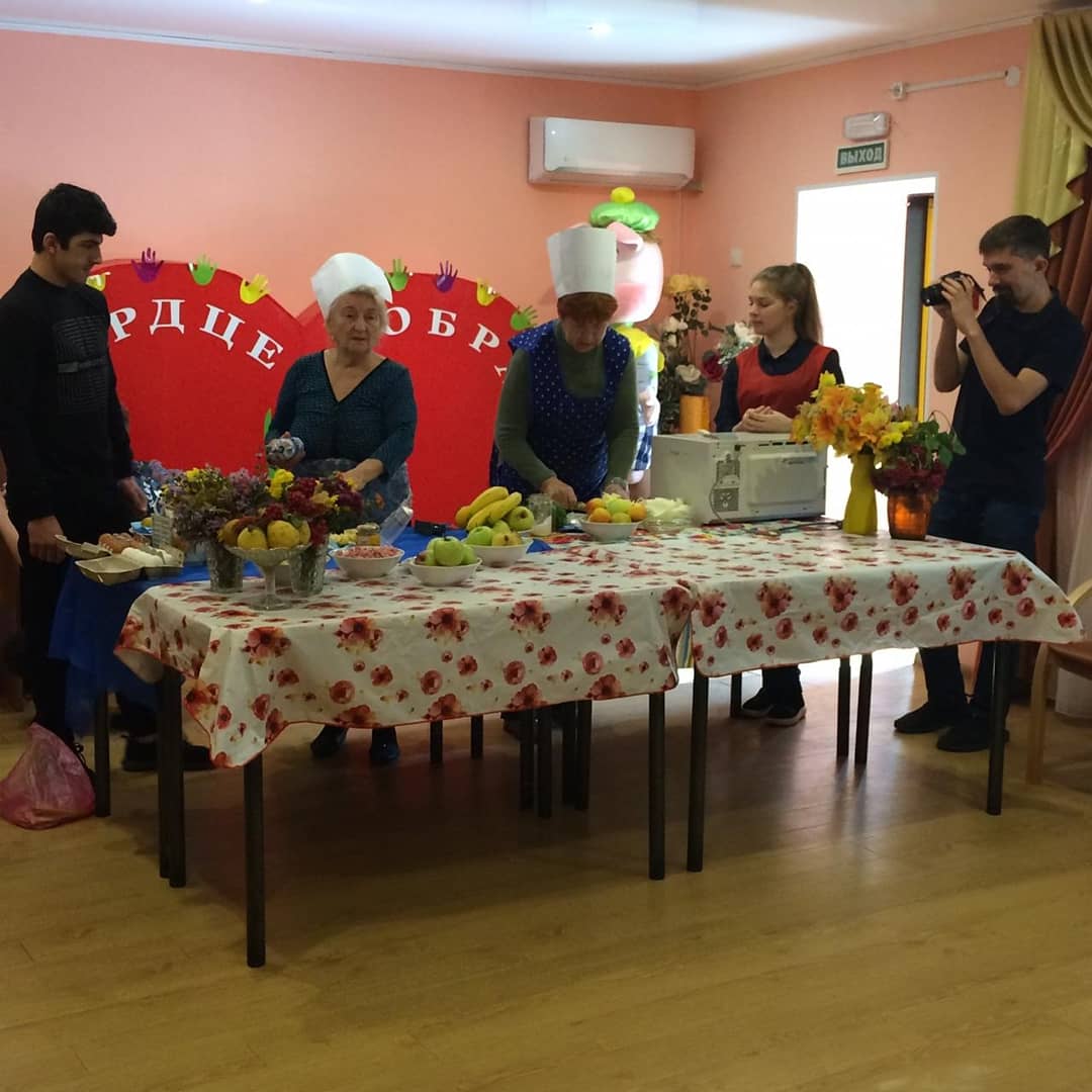 Получатели социальных услуг поздравили настоящего профессионала, повара с большим опытом Дзубенко А.Е., присутствующую на празднике. Алле Евгеньевне в рамках мероприятия присвоили статус «Шеф-повара», и она провела мастер-класс по приготовлению салата «Витаминный». Каждый из получателей социальных услуг тоже подготовил своё блюдо по своему, фирменному рецепту. Экспериментируя, добавляя ингредиенты на глазах у присутствующих, они творили «кулинарные шедевры». Каждый старался не только вкусно, быстро, приготовить своё блюдо, но и креативно оформить. Когда шедевры были готовы, все участвующие жюри по- достоинству оценили каждое блюдо. Всем хотелось обменяться рецептами разных блюд и узнать новые. Рецепты в ярком оформлении были представлены на стенде и каждый мог ознакомиться с ними. Всем присутствующим мероприятие так понравилось, что захотелось «продолжения банкета », а он обязательно состоится в следующем году!!!