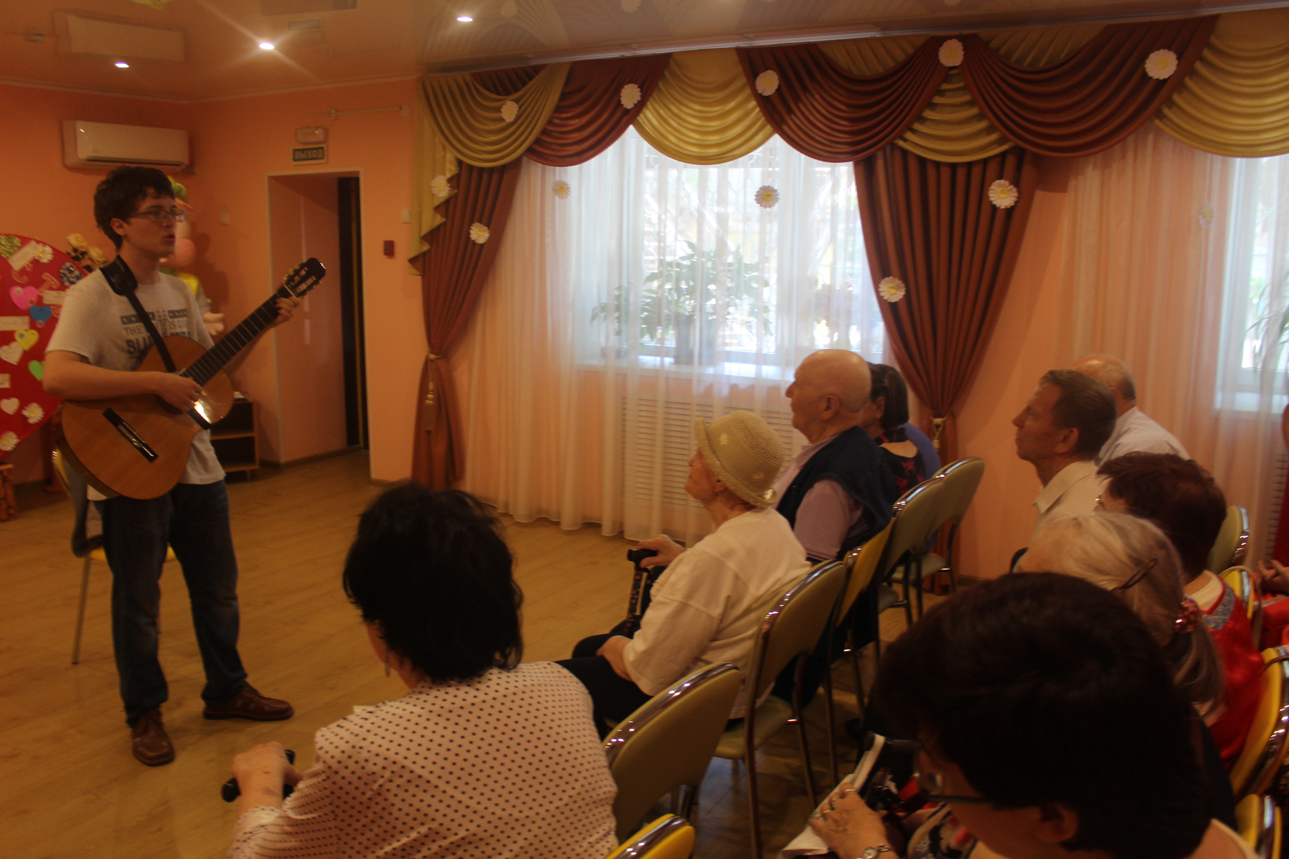 На мероприятие была приглашена одна пожилая семейная пара, которая прожила вместе 68 лет- Николай Владимирович и Валентина Ивановна Устиновы. В их честь была исполнена песня студентами из Рост ГМУ –«Вечная любовь». Также, бард из ЦГБ им. М. Горького Дмитрий Ханин исполнил авторскую песню про счастливую семейную жизнь- «Оладьи».
