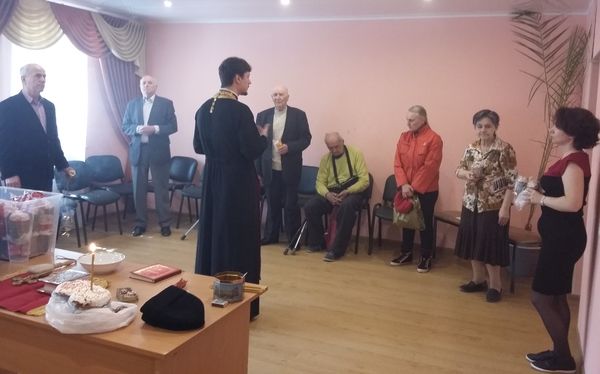 10 апреля в МБУ «Центр социального обслуживания населения Кировского района» иерей Старо-Покровского храма Сергей Лысый совершил молебен с сотрудниками центра и получателями социальных услуг. Священнослужители храма поздравили всех собравшихся с великим праздником, желая здоровья и благополучия, вручили всем Пасхальные подарки, подготовленные сотрудниками прихода. Присутствующим рассказали о традициях празднования Пасхи, о евангельских событиях, связанных с этим великим торжеством, а также о ежегодном чуде схождения Благодатного огня.